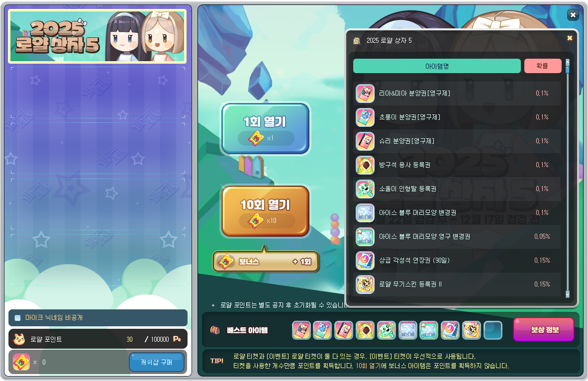 ▷ Latale皇家礼券已停止发放,可能会通过以后的活动发放。