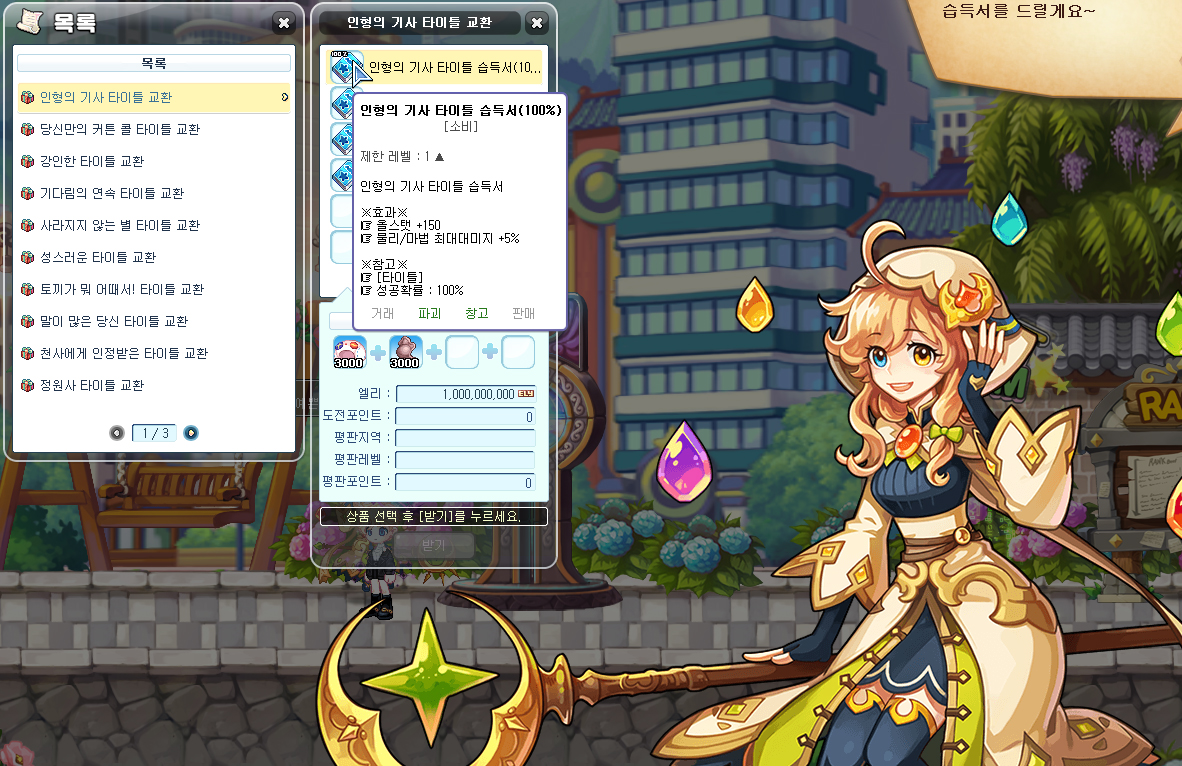■ 阿斯玛的副本称号兑换一览中追加了100%获得卷轴兑换。