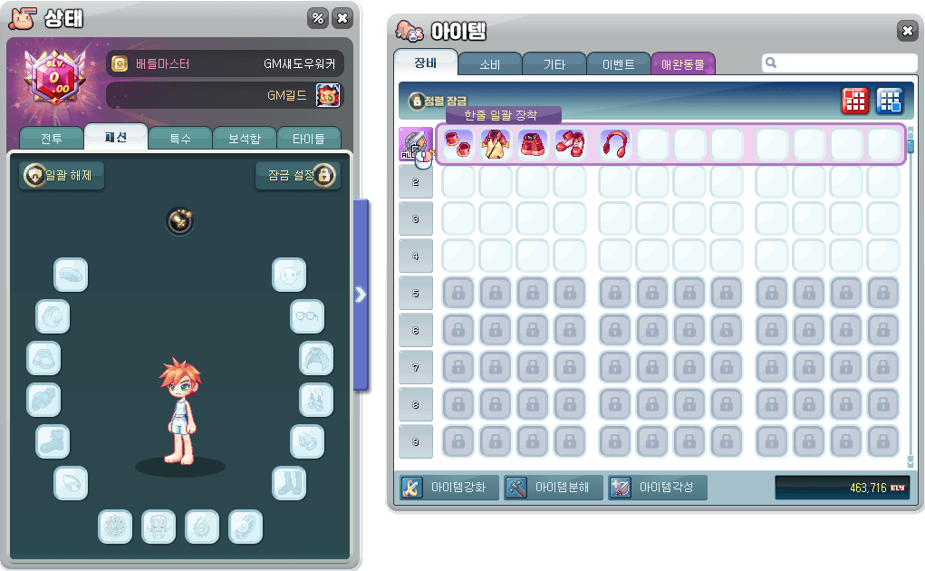 ▷ 仅打开库存或打开状态窗口即可批量装备装备道具。