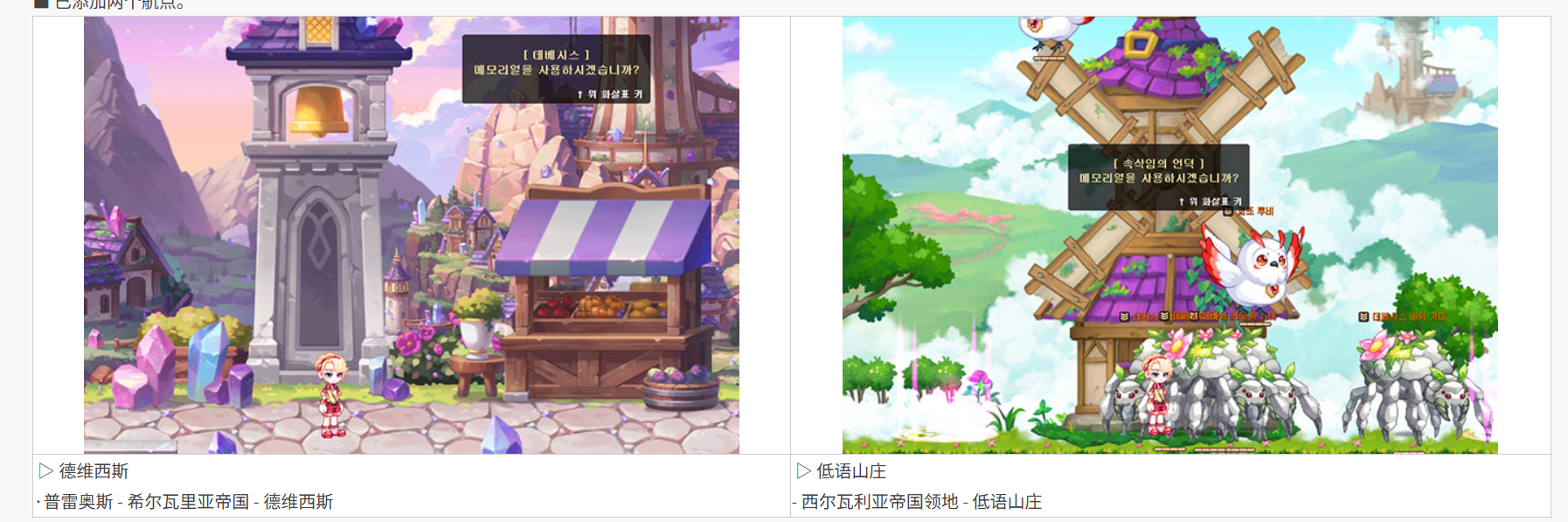 | ■ 添加了新的场景。 | 野外地图-轻语山坡 | 主城-德维西斯村 |