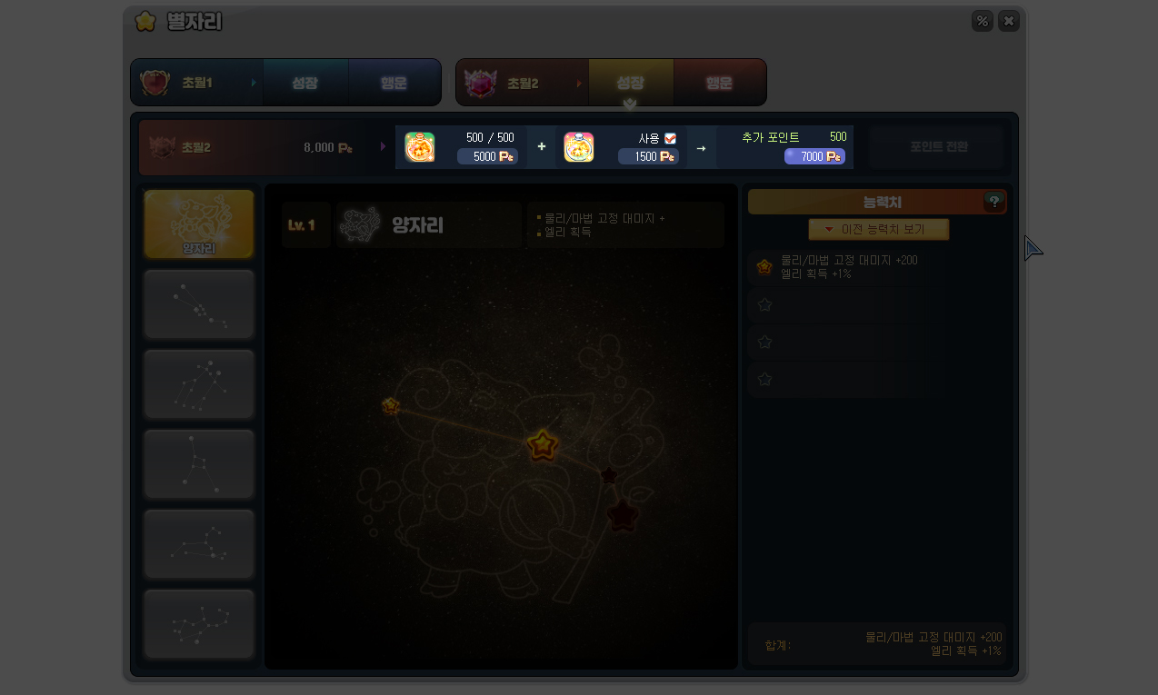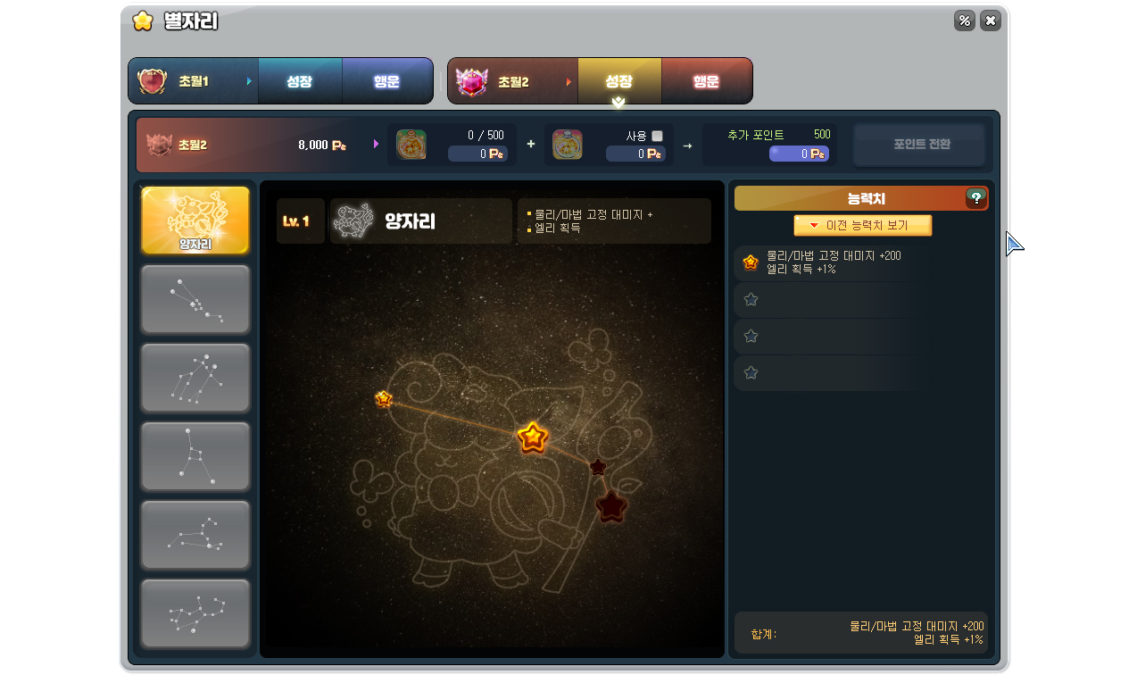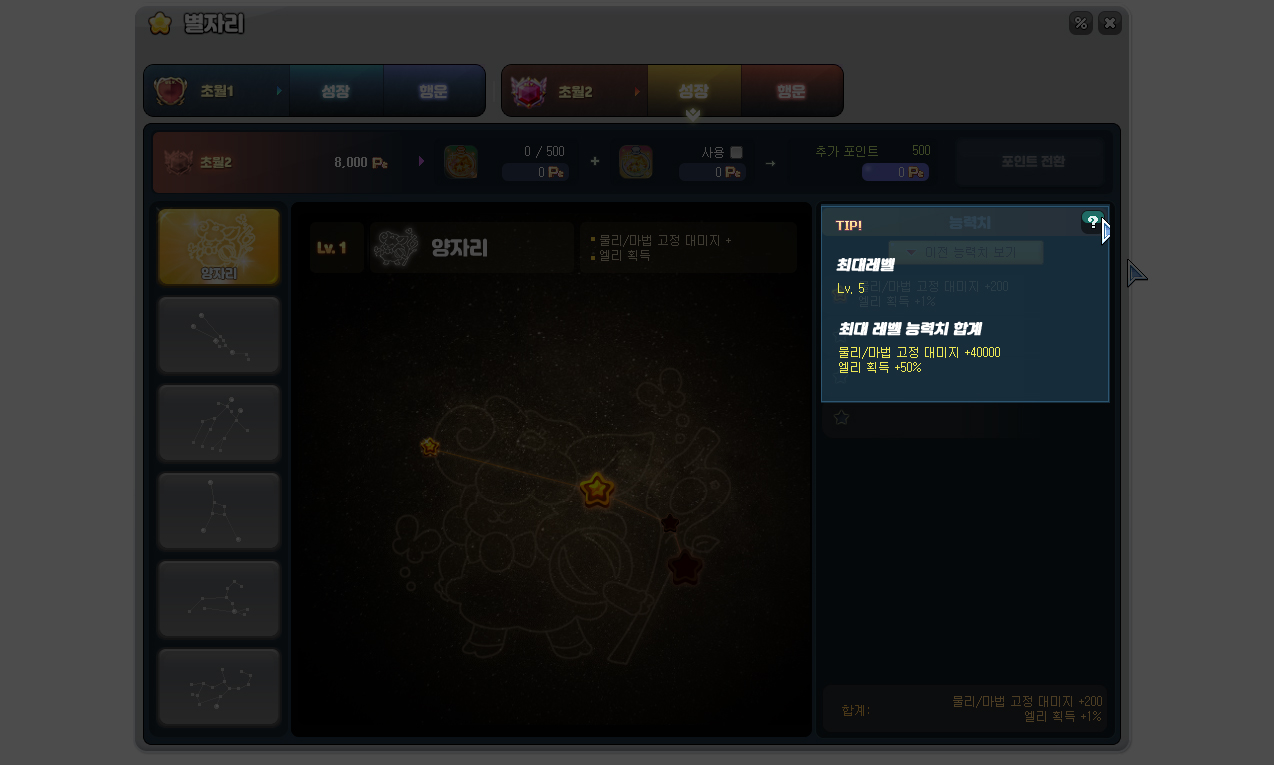 ▷ 将鼠标悬停在成长星座能力信息中的“?”按钮上,即可查看最高等级能力总信息。