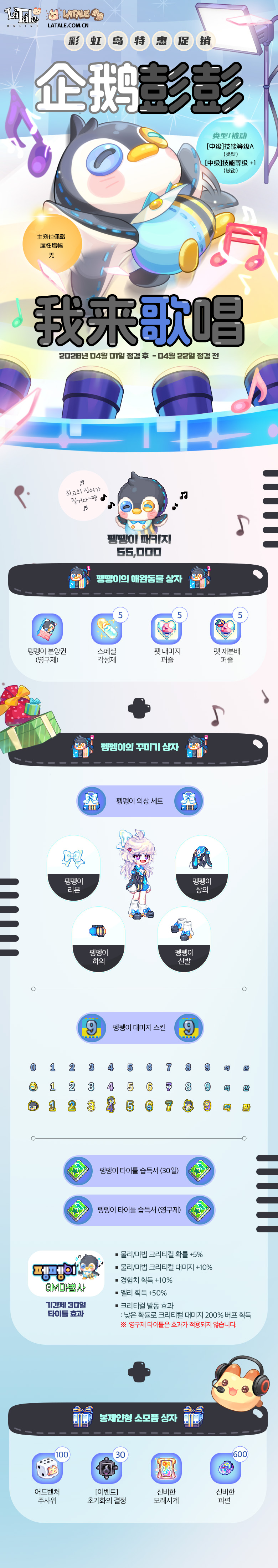 小铁匠 2026年4月1日 字数:126,阅读约1分钟 全屏显示 宠物礼包-纽扣企鹅 宠物礼包 782 8 0 本轮⏰︎ 活动时间 2026年 4.1-4.22 进行中 上一轮⏰︎ 活动时间 2025年 8.13-9.3 已结束 上一轮⏰︎ 活动时间 2025年 3.5-3.26 已结束 往期内容留存,图片过大,输入123查看 隐藏内容,输入密码后查看 提交验证 活动 宠物礼包 本文作者:小铁匠本文链接: https://latale.com.cn/pet-start/125.html 版权声明:本小站内容均可转载发布,最好帮忙宣传一下,感谢了您~ 80宠物礼包-纽扣企鹅海报分享QQ分享QQ空间微博分享复制链接 支付宝扫一扫 微信扫一扫 感谢支持 文章很赞!支持一下吧
