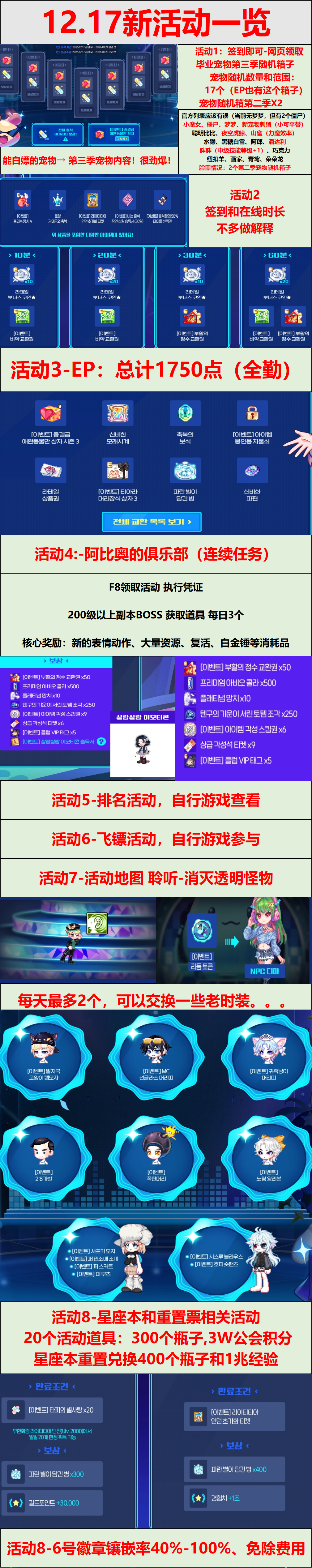 [12.17-2.11]阿比奥俱乐部 系列活动 93 0 0 活动一图流 该一图流来源于:巧偃 活动视频攻略查看前往bilibli搜索 更新时间线 活动页面留存区 ❤️ 留存资料区,有兴趣看的可以输入123查看 隐藏内容,输入密码后查看 提交验证 活动 系列活动 本文作者:小铁匠本文链接: https://latale.com.cn/xilie/384.html 版权声明:本小站内容均可转载发布,最好帮忙宣传一下,感谢了您~ 00[12.17-2.11]阿比奥俱乐部海报分享QQ分享QQ空间微博分享复制链接 支付宝扫一扫 微信扫一扫 感谢支持 文章很赞!支持一下吧