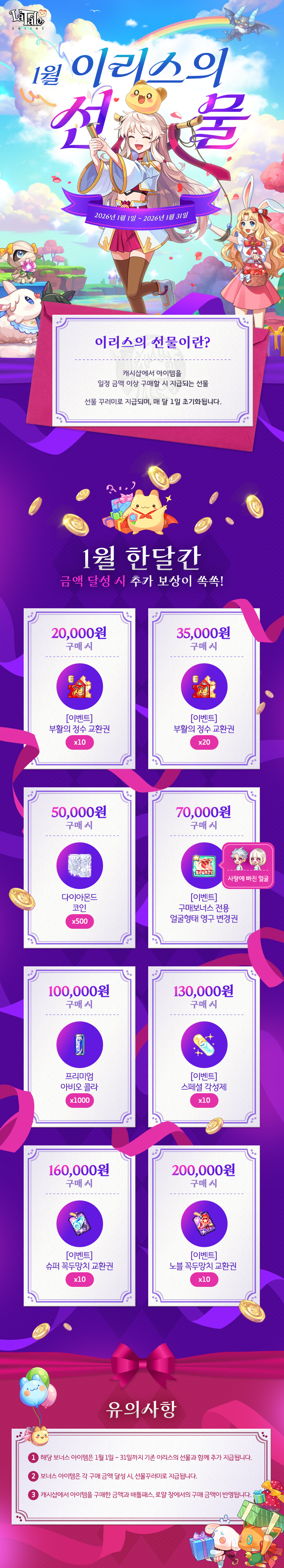 [1.1-1.31]2026年1月返利-商城红利加码 系列活动 323 0 0 ⏰︎ 活动时间:2026年1月1日-2026年1月31日 返利(商城红利) 简介一图流 在商城购买金额达到对应点数额外返利物品 活动原图 活动 系列活动 本文作者:小铁匠本文链接: https://latale.com.cn/xilie/394.html 版权声明:本小站内容均可转载发布,最好帮忙宣传一下,感谢了您~ 00[1.1-1.31]2026年1月返利-商城红利加码海报分享QQ分享QQ空间微博分享复制链接 支付宝扫一扫 微信扫一扫 感谢支持 文章很赞!支持一下吧
