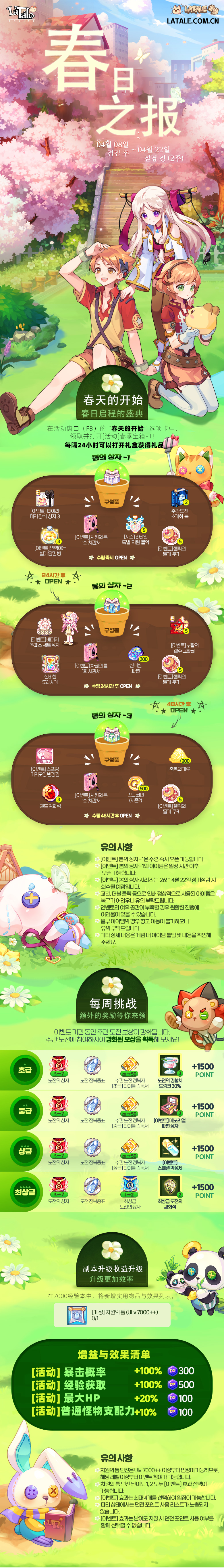小铁匠 2026年4月8日 字数:281,阅读约1分钟 全屏显示 [4.08-4.22]春日之报 系列活动 103 0 0 美神的温馨提示:第三次开礼盒(包含公会奖励),请记得在专门领公会奖励的角色上开启哦~ 如果你要问美神是谁,就去B站搜索草莓超多吧 活动一图流(翻译版) 活动页面留存区 ❤️ 留存资料区,有兴趣看的可以输入123查看 隐藏内容,输入密码后查看 提交验证 活动 系列活动 本文作者:小铁匠本文链接: https://latale.com.cn/xilie/488.html 版权声明:本小站内容均可转载发布,最好帮忙宣传一下,感谢了您~ 00[4.08-4.22]春日之报海报分享QQ分享QQ空间微博分享复制链接 支付宝扫一扫 微信扫一扫 感谢支持 文章很赞!支持一下吧