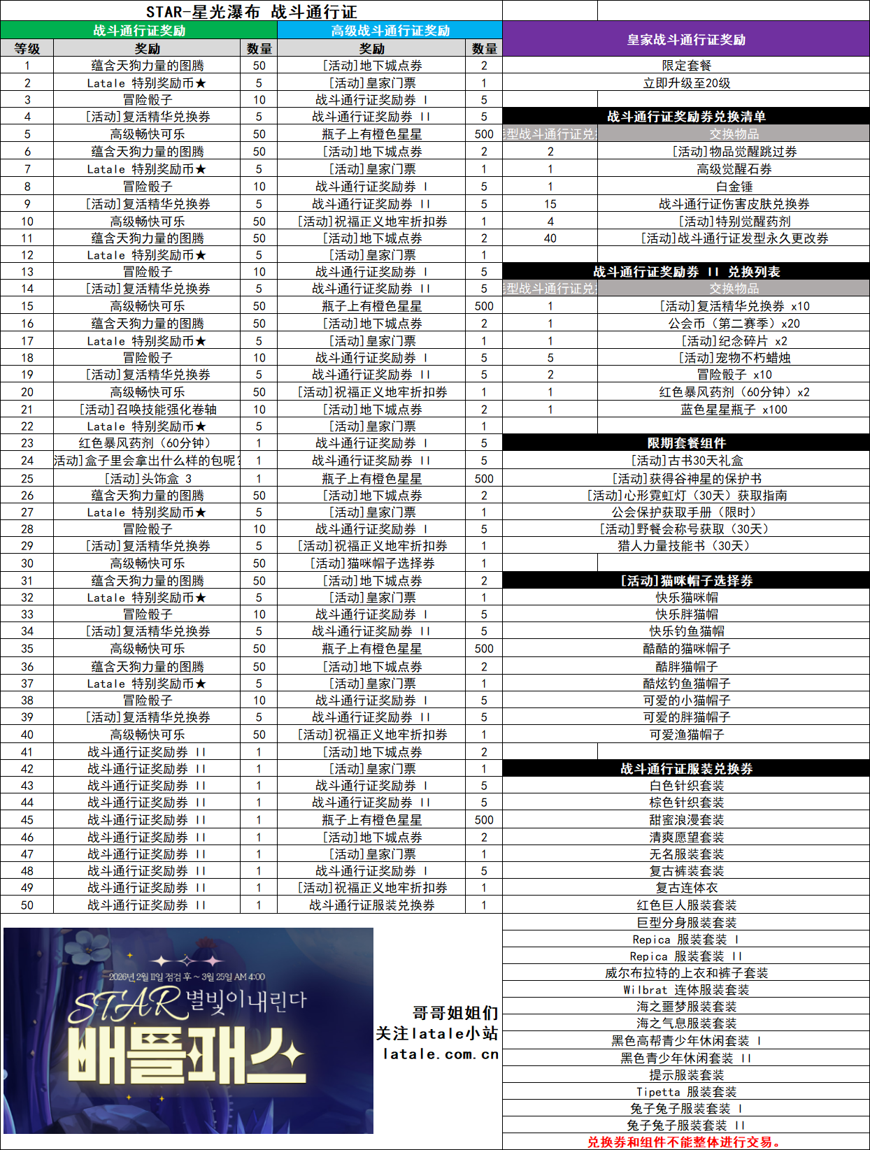 小铁匠 2026年2月11日 字数:42,阅读约1分钟 全屏显示 2026年2月战令-STAR星光瀑布 战令 253 8 0 回顾往期战令 一图攻略 ❤️ 本图已压缩,大小300+kb,流量访问可放心食用 活动原图备份 活动 战令 本文作者:小铁匠本文链接: https://latale.com.cn/zhanling/417.html 版权声明:本小站内容均可转载发布,最好帮忙宣传一下,感谢了您~ 802026年2月战令-STAR星光瀑布海报分享QQ分享QQ空间微博分享复制链接 支付宝扫一扫 微信扫一扫 感谢支持 文章很赞!支持一下吧